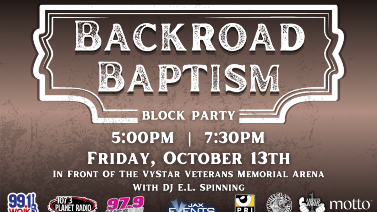 Join 99.1 WQIK, 107.3 PLANET RADIO, and 97.9 KISS FM for the Backroad Baptism Block Party before the Jelly Roll show on Friday, October 13th from 5:00PM-7:30PM!
